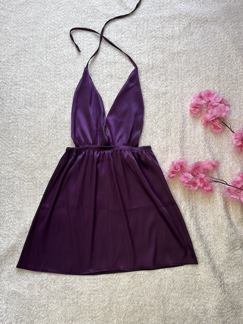 لباس خواب عروسکی ساتن رنگ بادمجونی