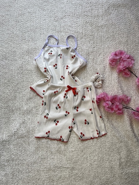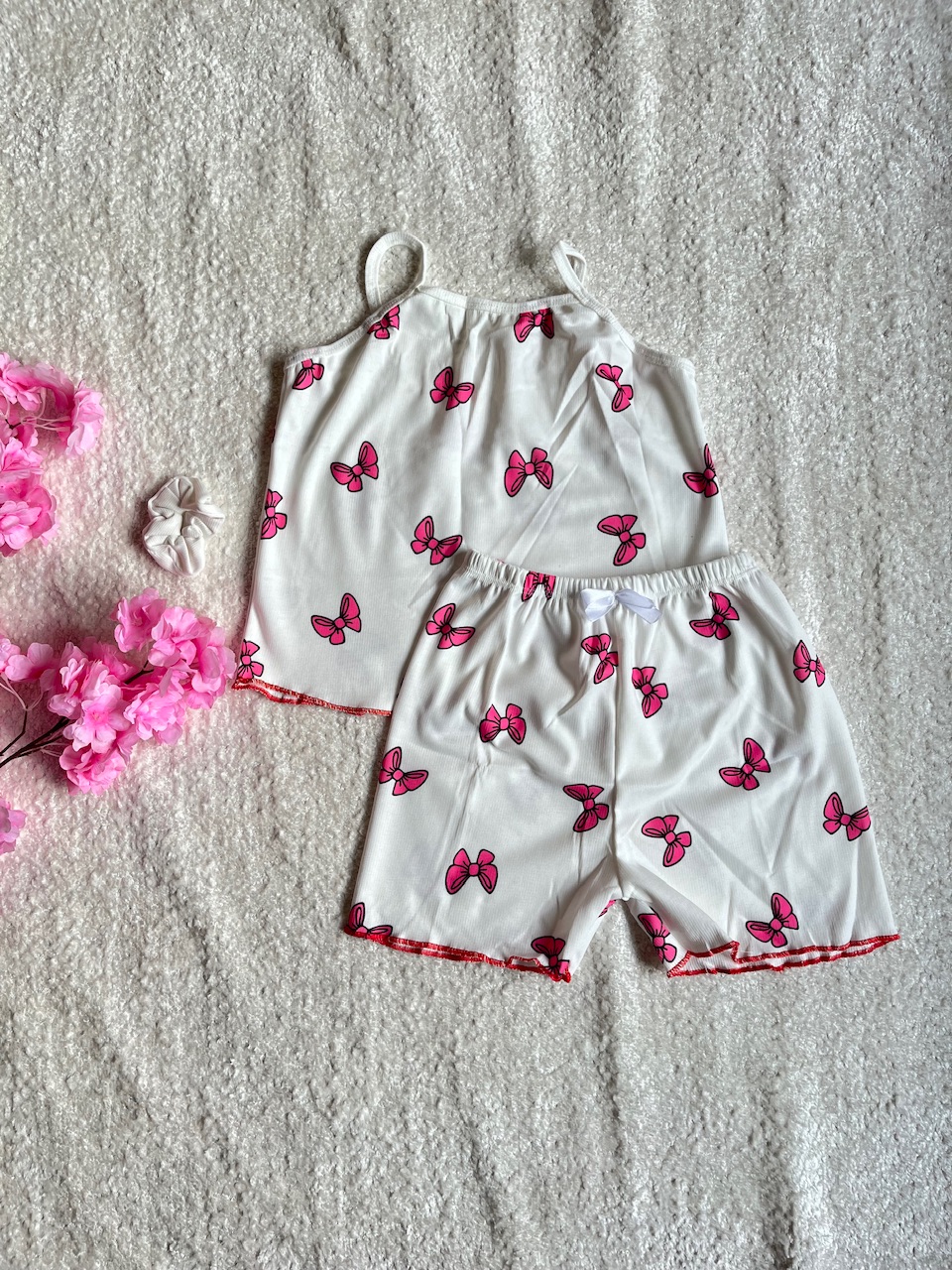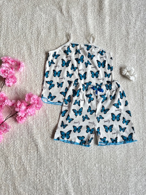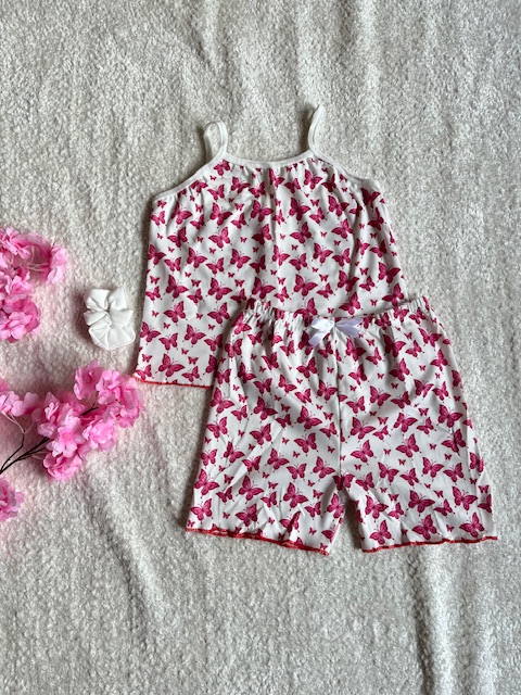 ست تاپ و شورتک کبریتی پروانه صورتی
