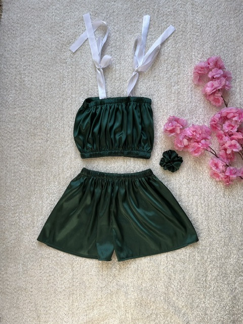 ست نیم تنه شورتک ساتن سبز زمردی