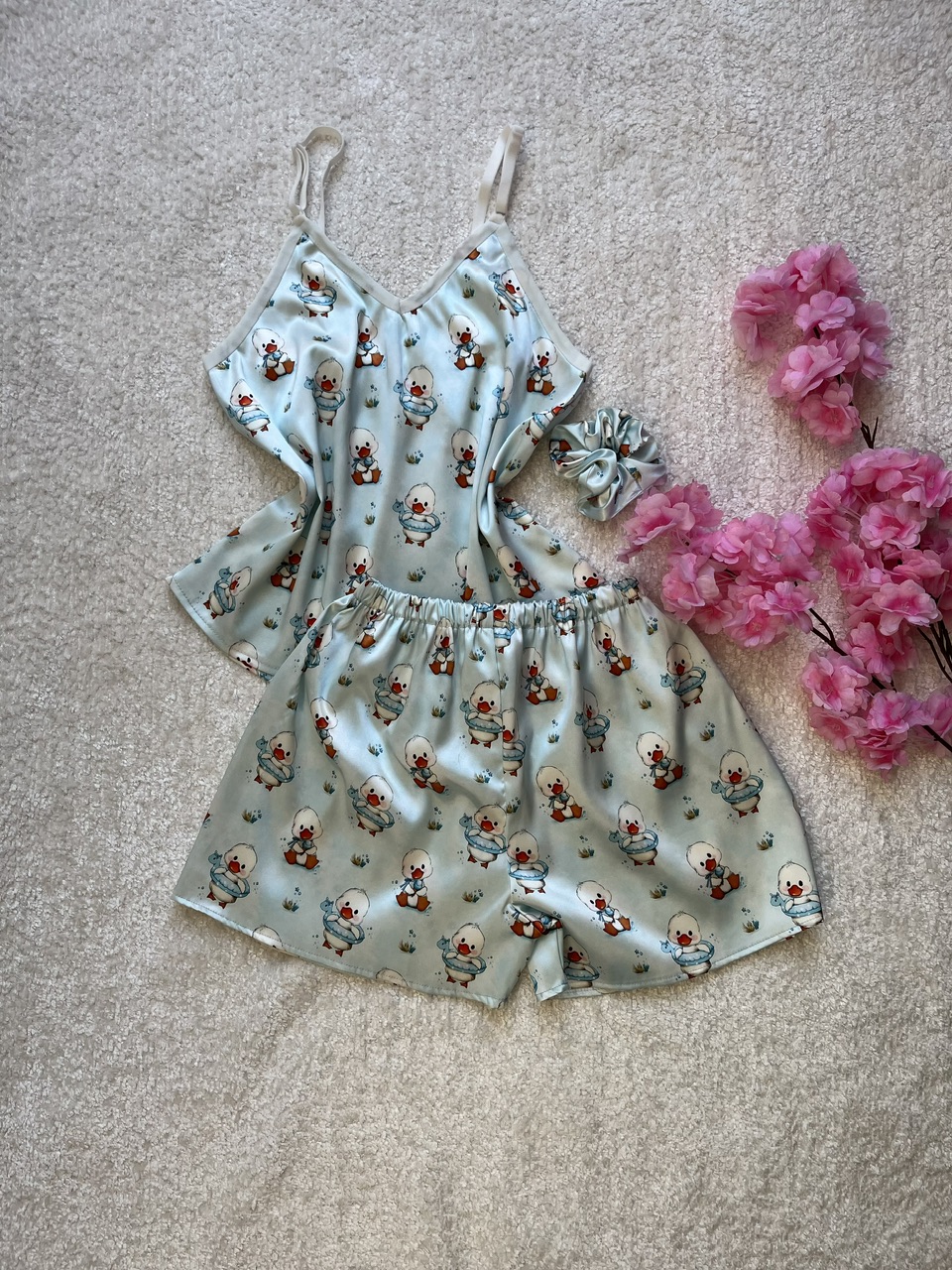 ست تاپ و‌شورتک ساتن طرح اردک