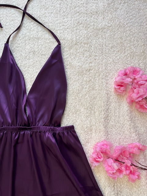 لباس خواب عروسکی ساتن رنگ بادمجونی