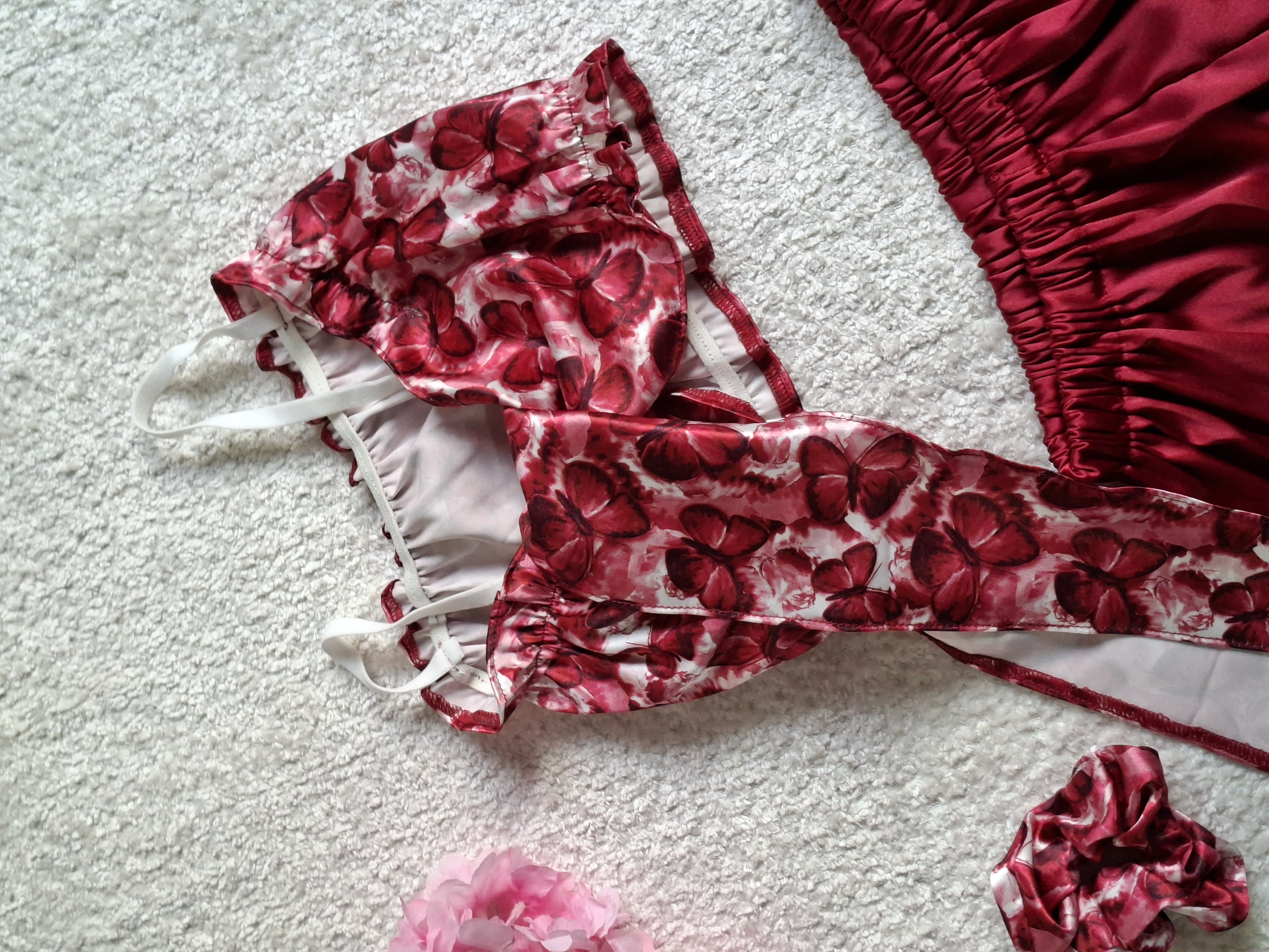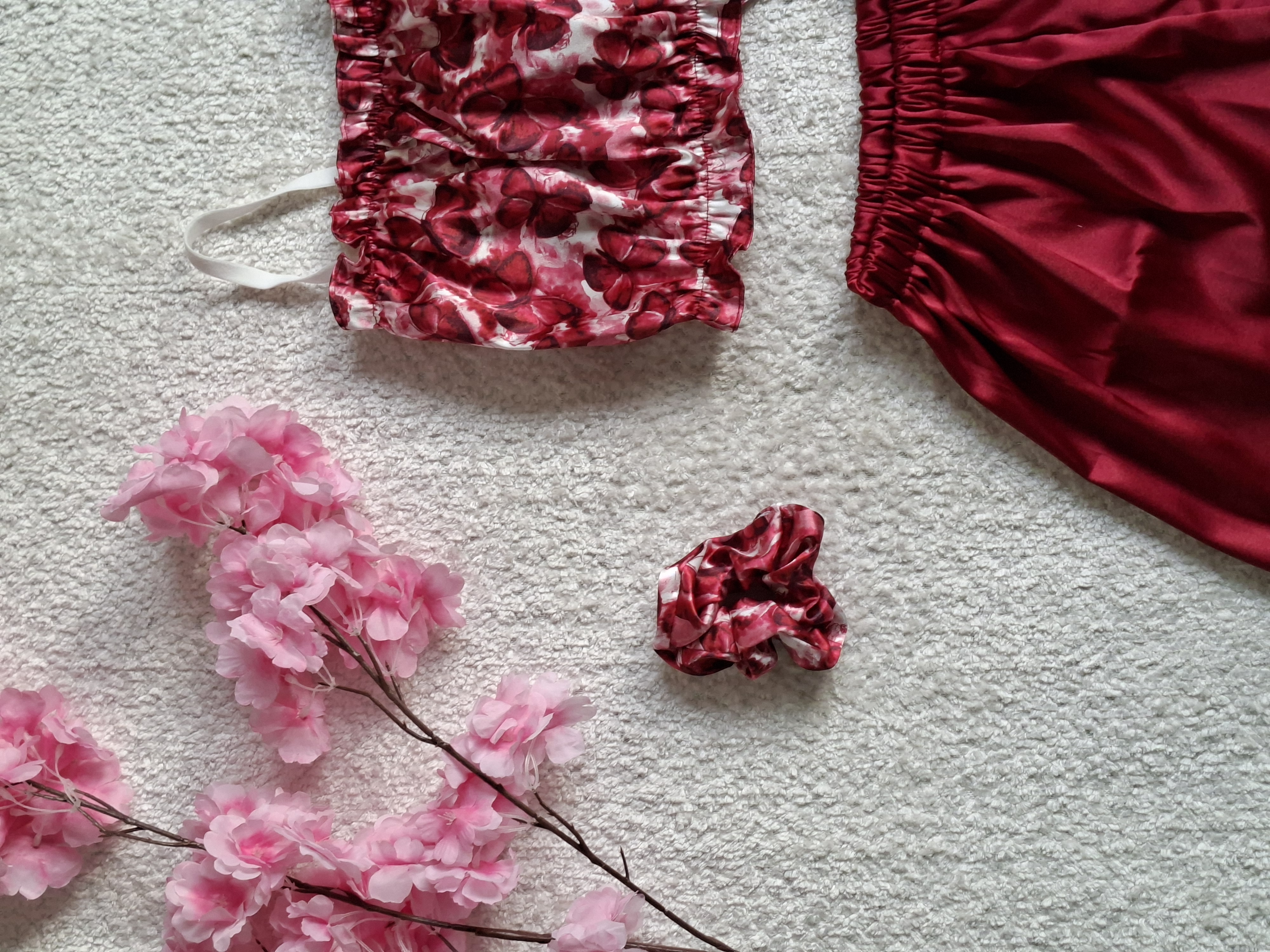 ست نیم تنه شورتک ساتن طرح پروانه البالویی
