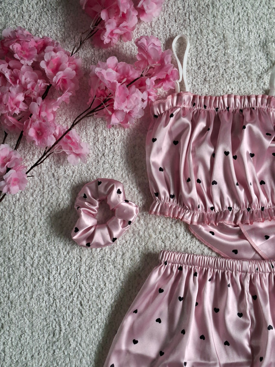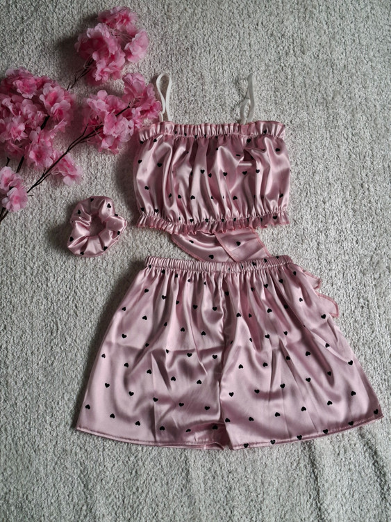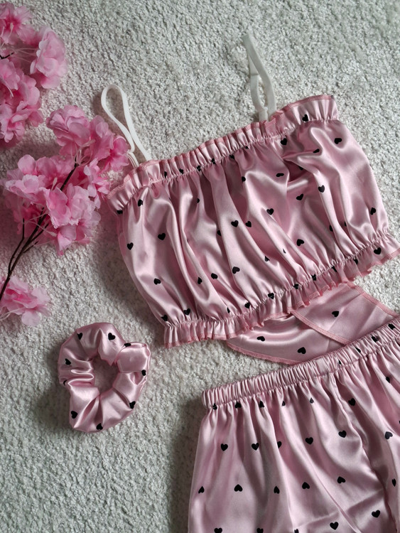 ستنیمتنهشورتک ساتن طرح قلب صورتی