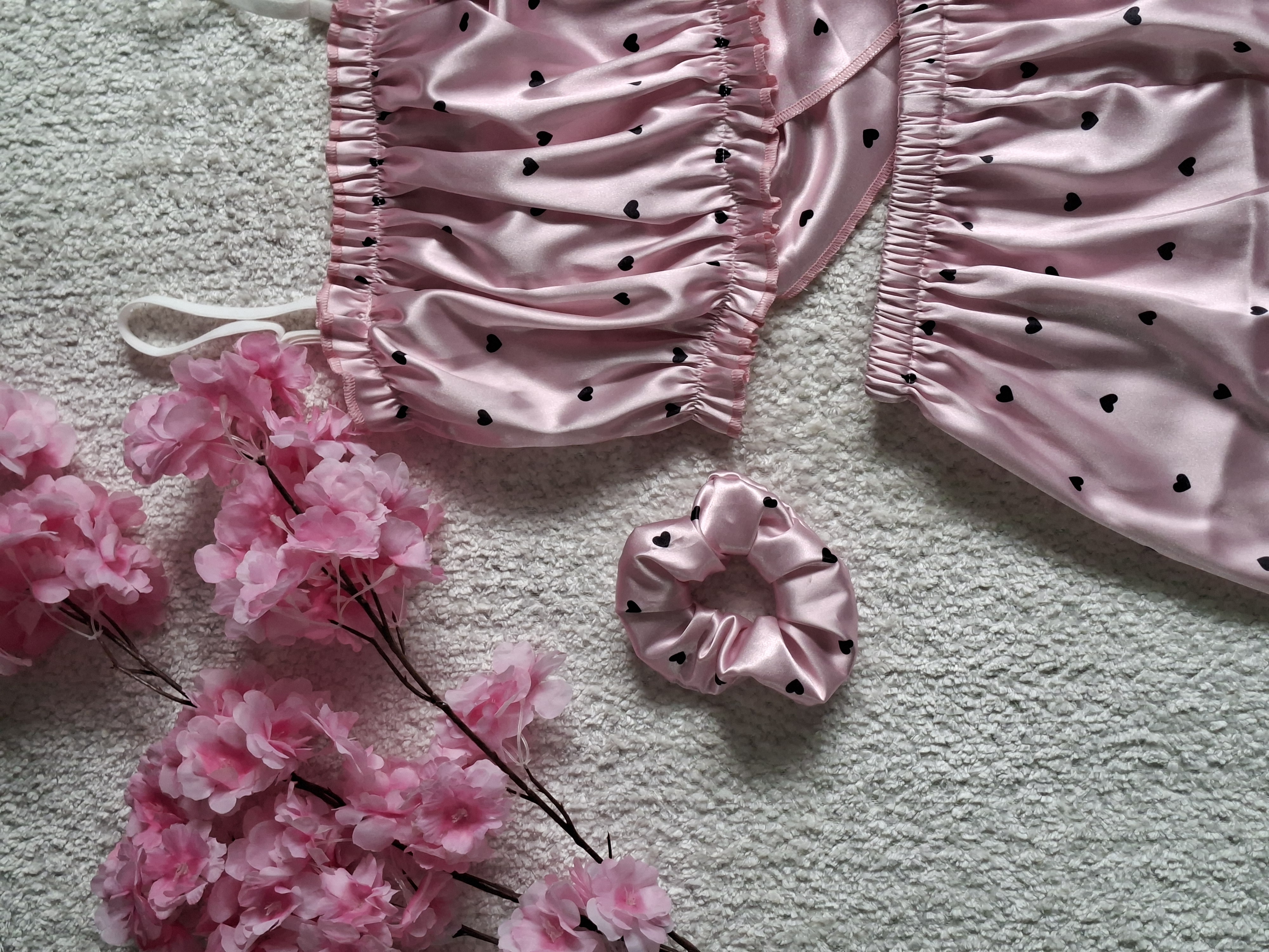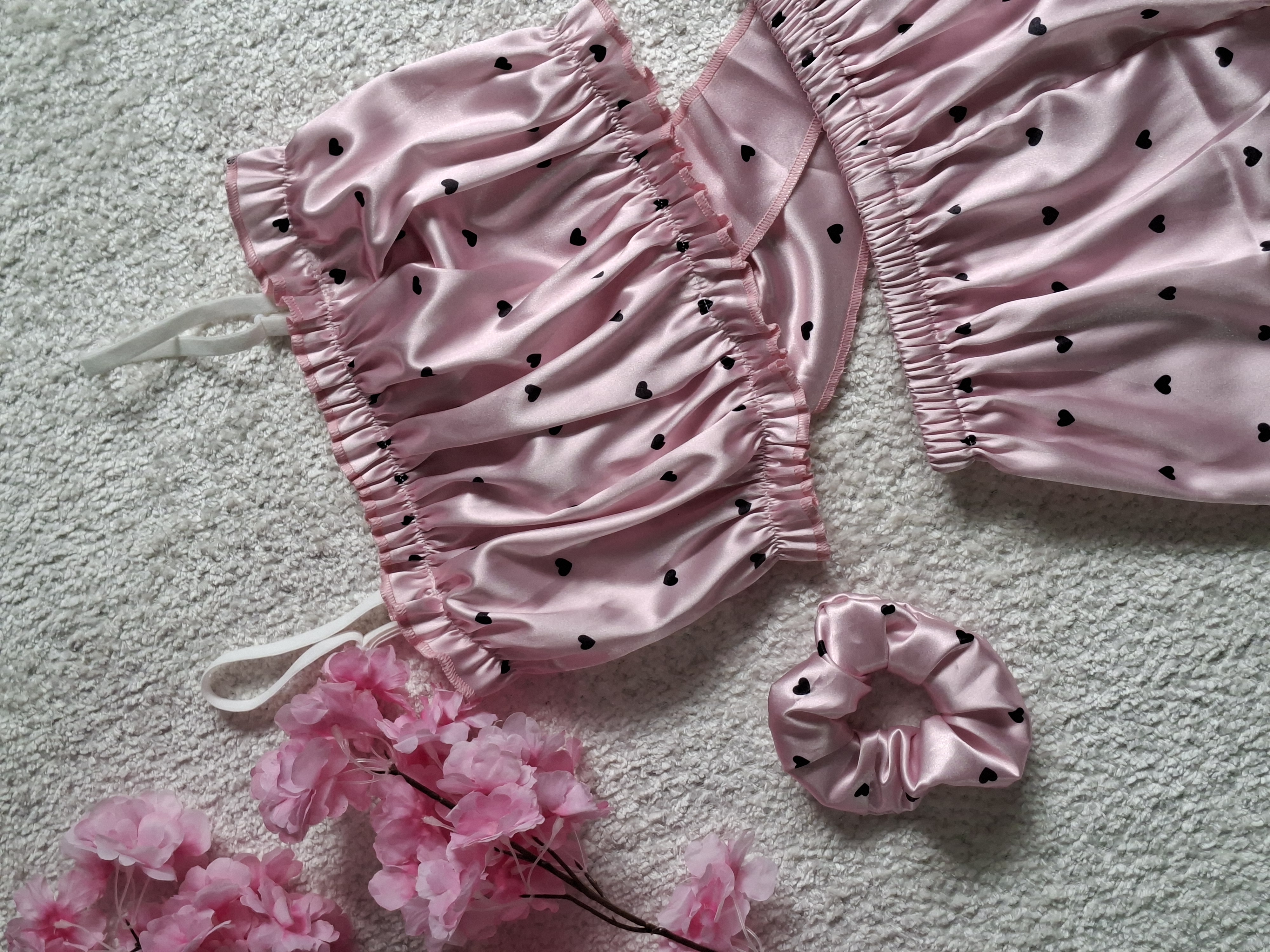 ستنیمتنهشورتک ساتن طرح قلب صورتی