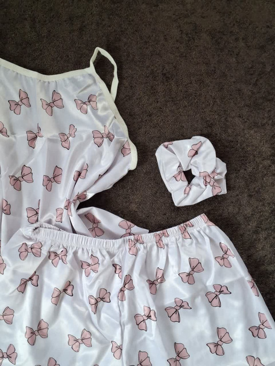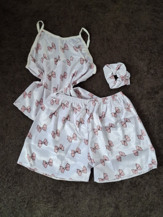 ست تاپ وشورتک ساتن پاپیون صورتی