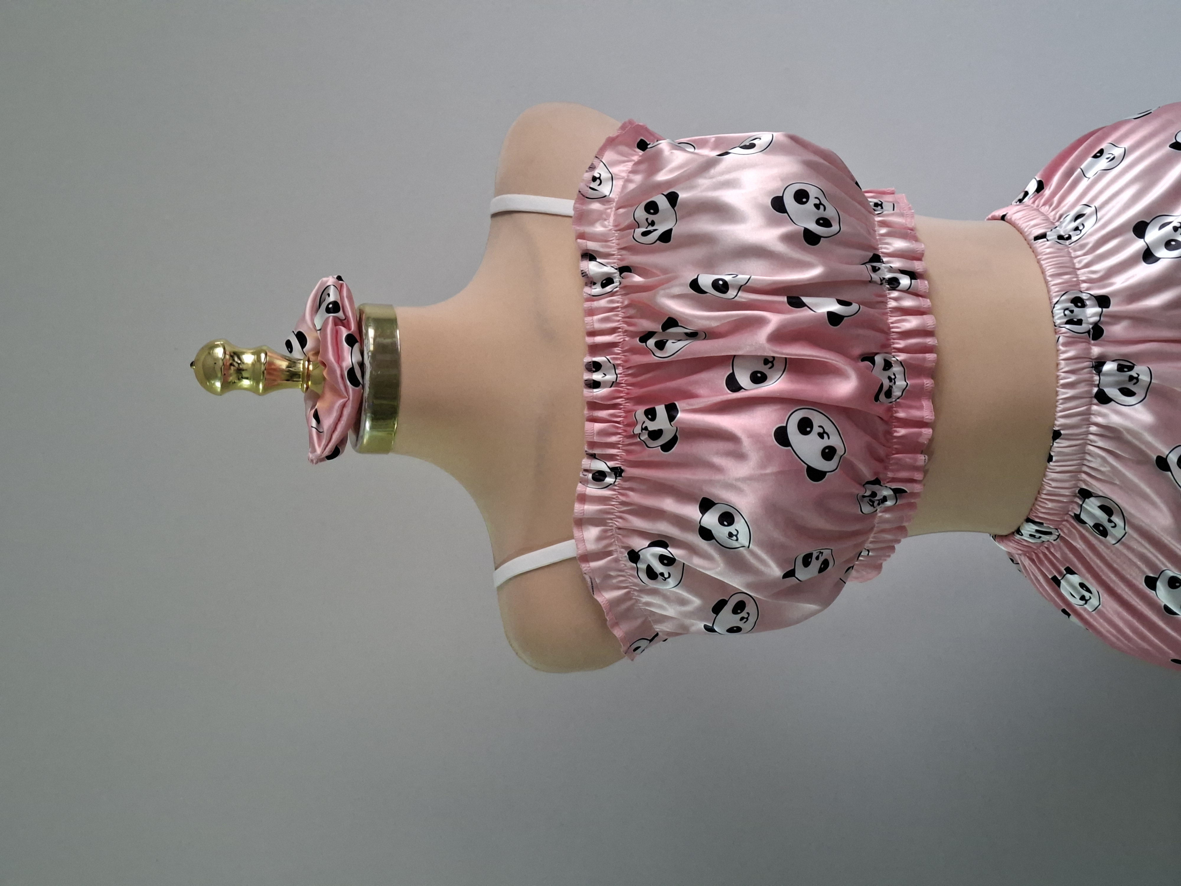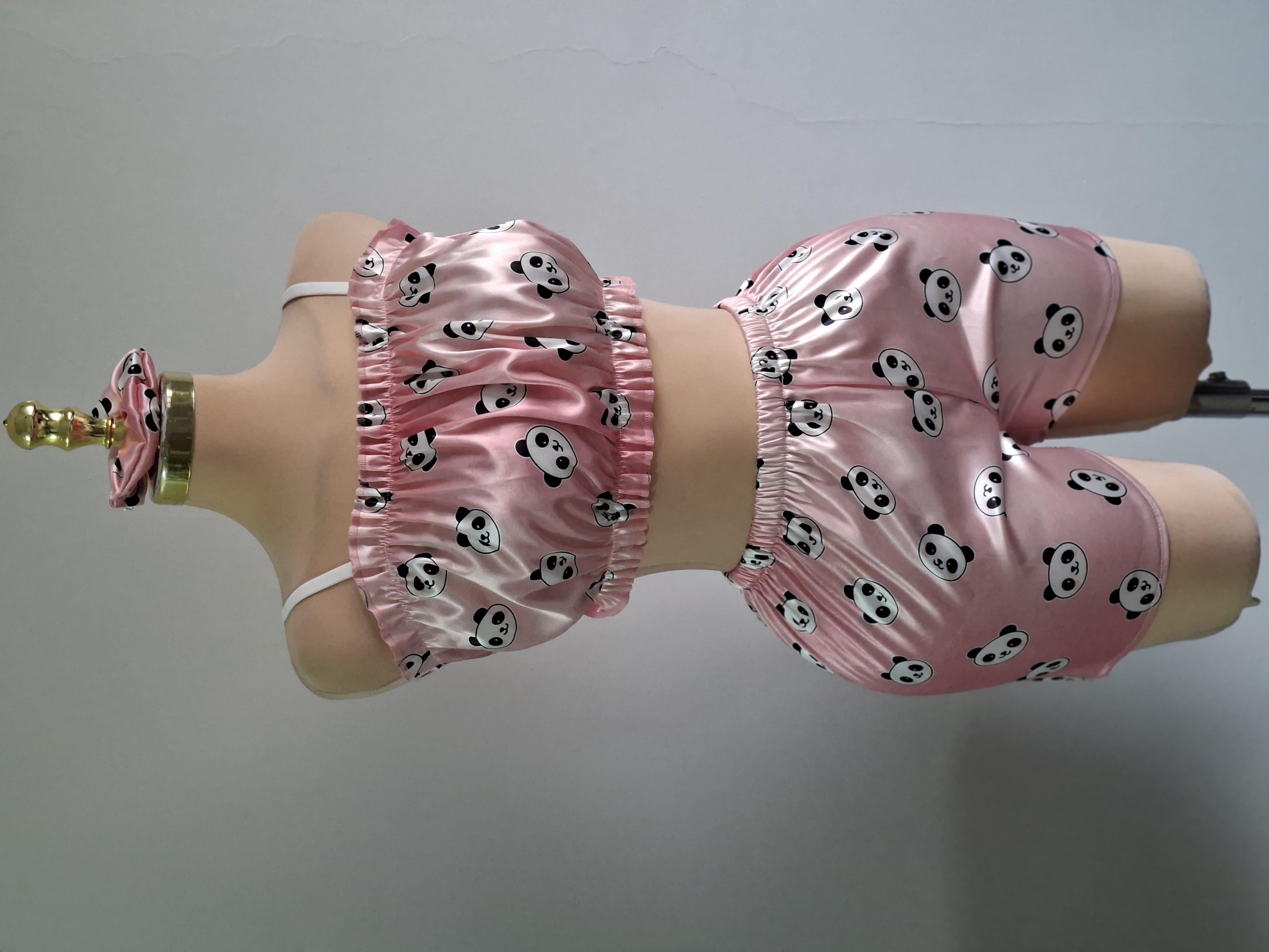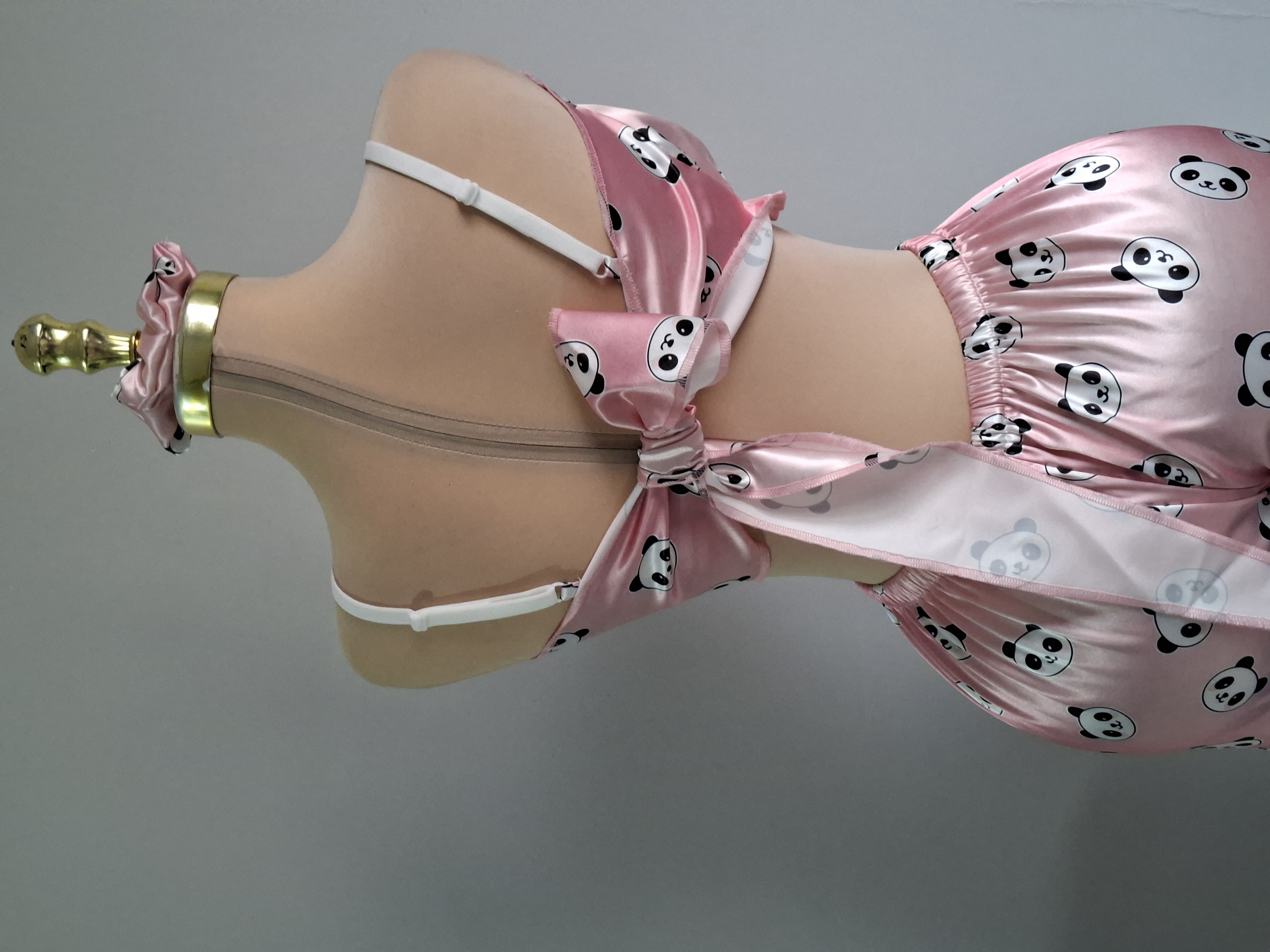 ست نیمتنه شورتک ساتن طرح پاندا صورتی