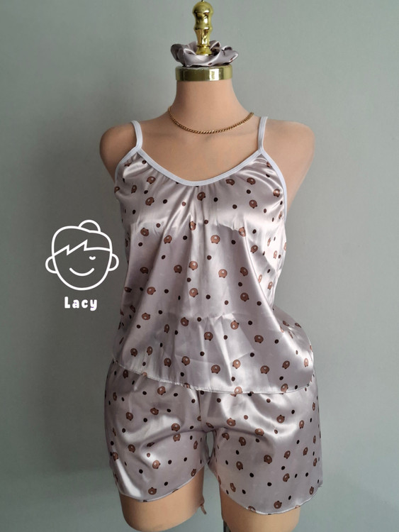ست تاپ وشورتک ساتن طرح تدی