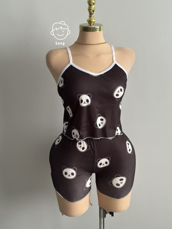 ست تاپ وشورتک کبریتی طرح پاندا مشکی