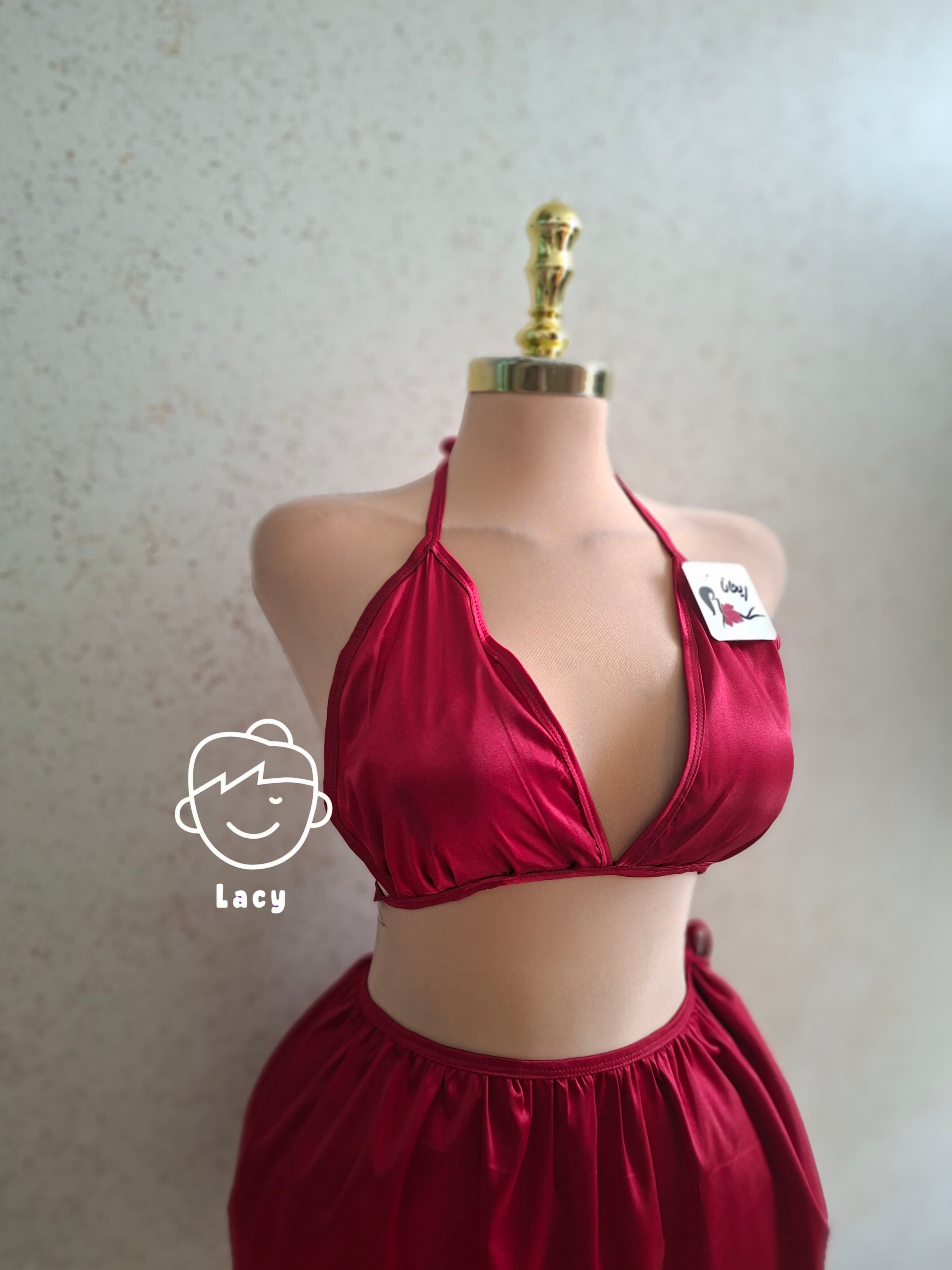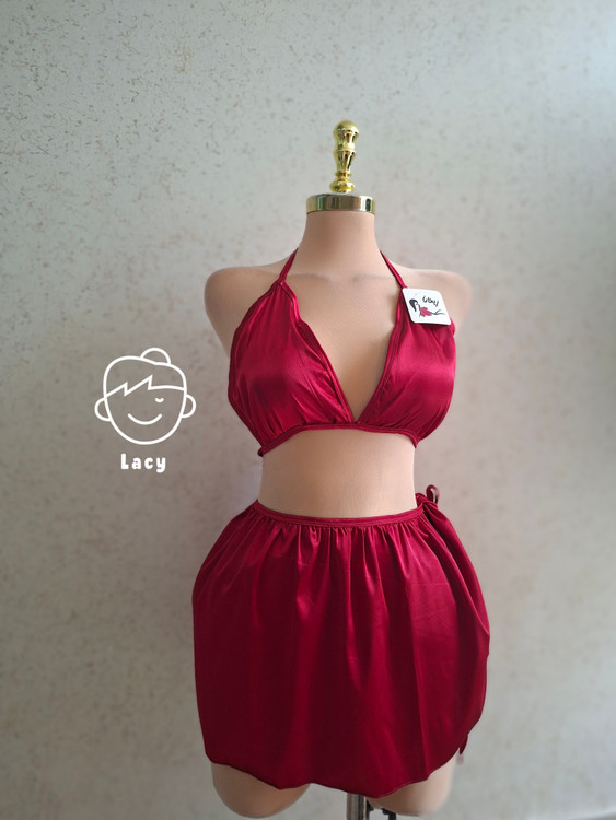 ست نیم تنه دامن ساتن رنگ آلبالویی